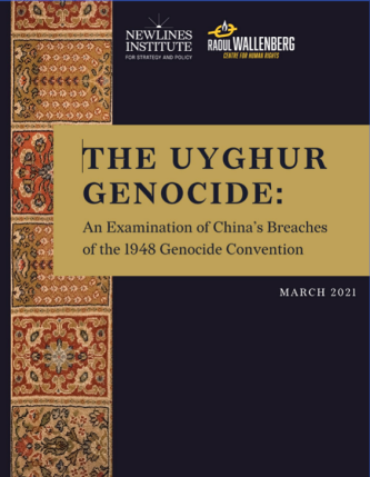 “This report concludes that the People’s Republic of China (China) bears State responsibility for committing genocide against the Uyghurs in breach of the 1948 Convention on the Prevention and Punishment of the Crime of Genocide (Genocide Convention) based on an extensive review of the available evidence and application of international law to the evidence of the facts on the ground.” FROM THE REPORT: “Acts of Genocide. While commission of any one of the Genocide Convention’s enumerated acts with the requisite intent can sustain a finding of genocide, the evidence presented in this report supports a finding of genocide against the Uyghurs in breach of each and every act prohibited in Article II (a) through (e).” “This report is the first independent expert application of the 1948 Genocide Convention to the ongoing treatment of the Uyghurs in China. It was undertaken by the Newlines Institute for Strategy and Policy, in cooperation with the Raoul Wallenberg Centre for Human Rights, in response to emerging accounts of serious and systematic atrocities in Xinjiang province, particularly directed against the Uyghurs, an ethnic minority, to ascertain whether the People’s Republic of China is in breach of the Genocide Convention under international law.”